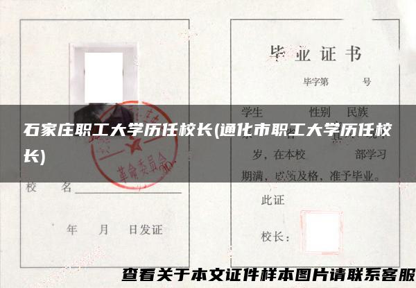 毕业证样本网创作《石家庄职工大学历任校长(通化市职工大学历任校长)》发布不易,请尊重! 转转请注明出处:https://www.czyyhgd.com/23523.html
