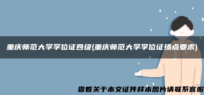 毕业证样本网创作《重庆师范大学学位证四级(重庆师范大学学位证绩点要求)》发布不易,请尊重! 转转请注明出处:https://www.czyyhgd.com/28523.html