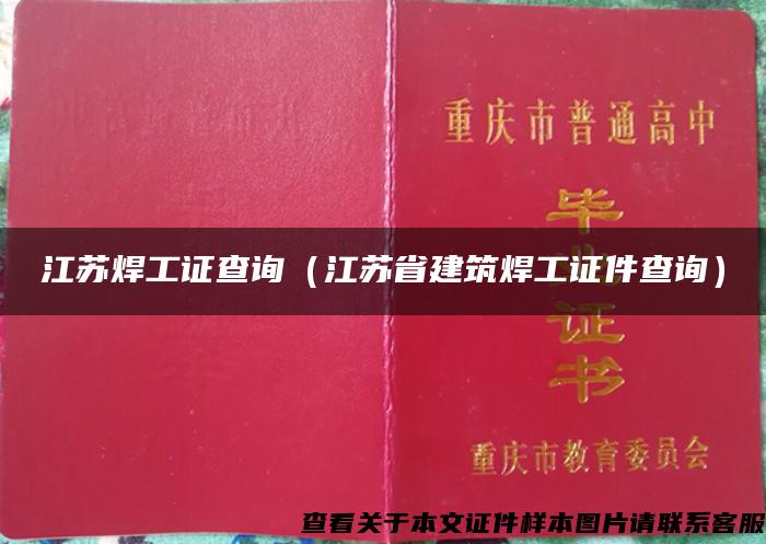 毕业证样本网创作《江苏焊工证查询(江苏省建筑焊工证件查询)》发布不易,请尊重! 转转请注明出处:https://www.czyyhgd.com/852837.html