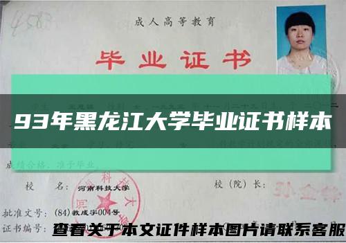 93年黑龙江大学毕业证书样本
